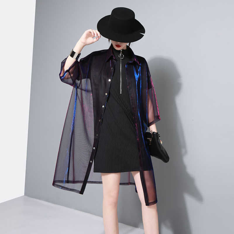 Reece Sheer Shimmer Shirt Dress - Rose Red Blue