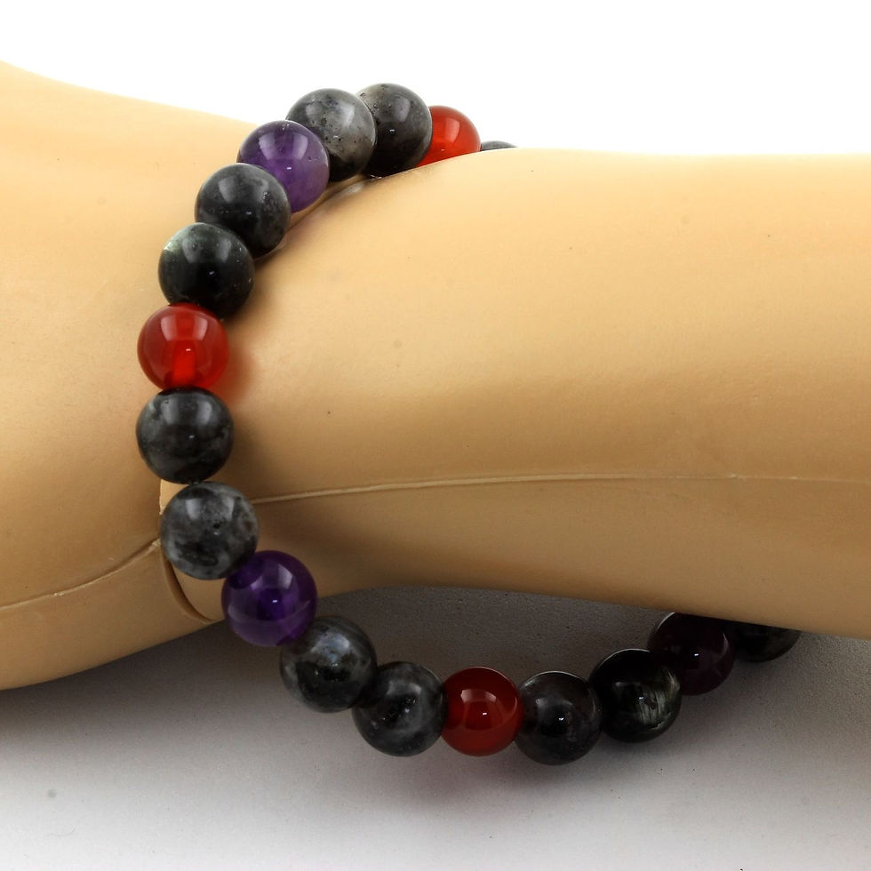 Labradorite + Amethyst + Red Agate Bracelet 8 mm Beads.