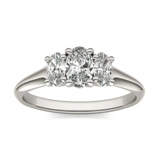 1 CTW Oval Lab Grown Diamond Three Stone Engagement Ring 14K White Gold (G-Vs)